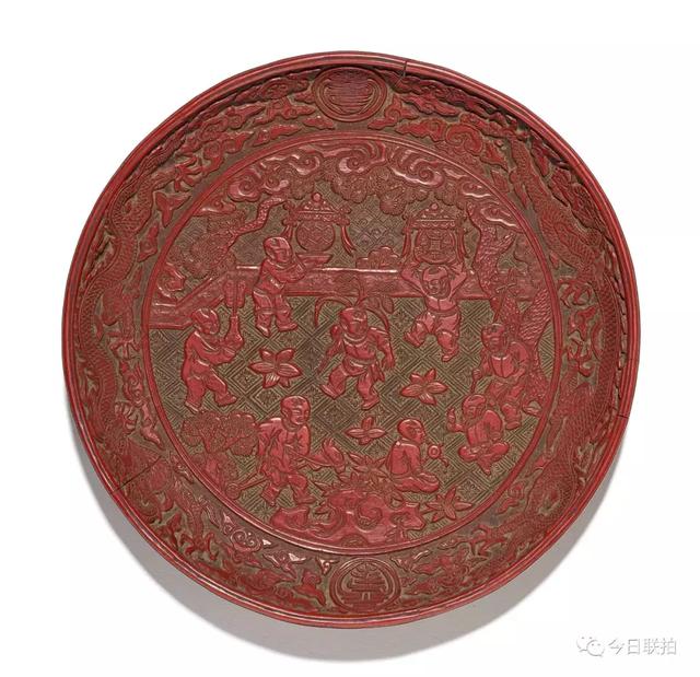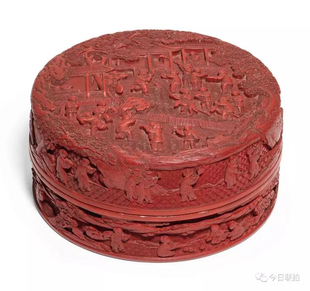 清乾隆 铜胎剔红锦地百子婴戏图盖盒