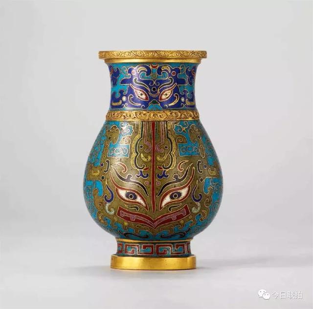 清乾隆 掐丝珐瑯仿古饕餮纹小瓶