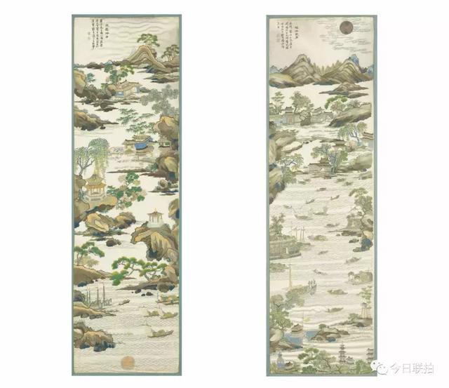十九世纪末/二十世纪初 缎绣题诗羊城景色图挂屏
