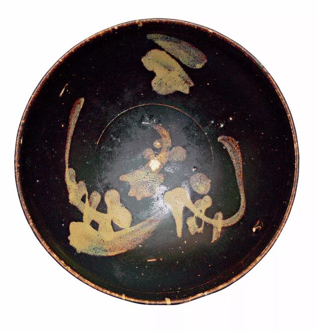南宋吉州窑黑釉彩绘月影梅纹碗