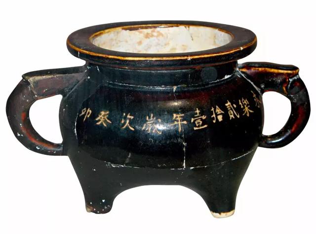 明永乐黑釉双耳带铭炉 景德镇考古所发掘品