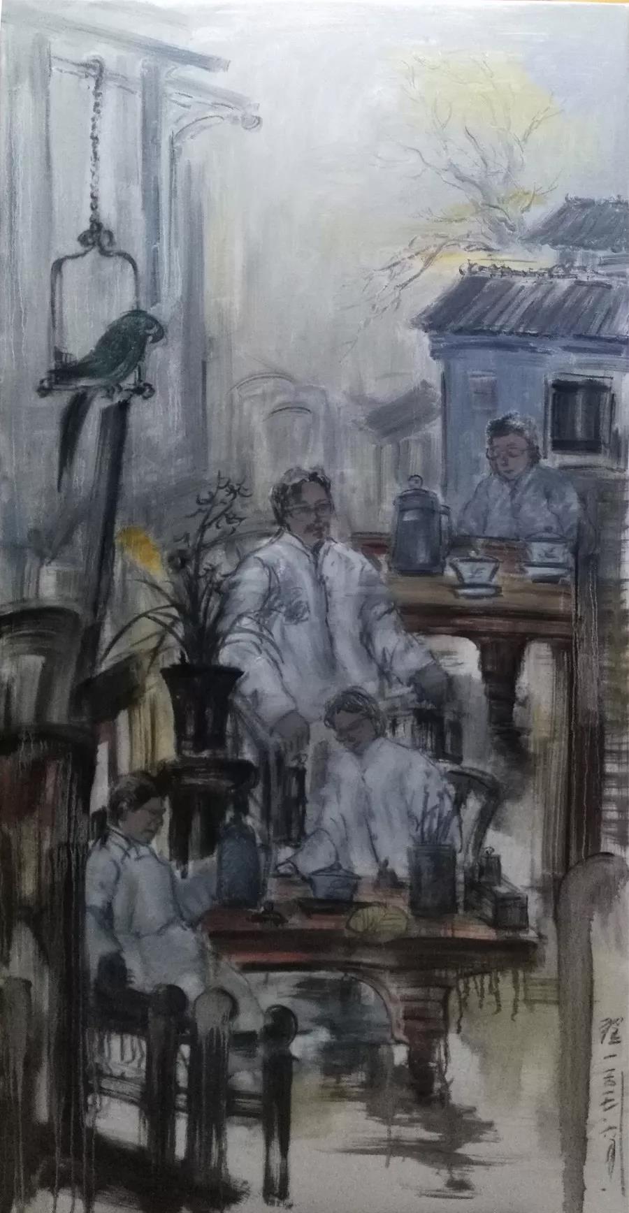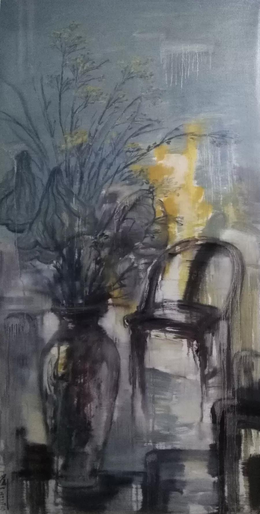 翟一是经典的情感写实派。他画万物生肃中的人间冷暖,也画静谧风景中的娇艳花朵,他的画中有时光古老的印记,也有温暖有爱的力量。