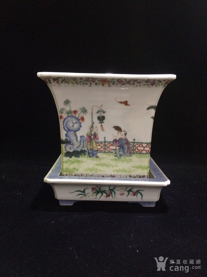 华夏收藏网润天阁联手福隆阁首场明清瓷杂专拍7.10~11,共132件拍品,于2016-07-11结束,该场拍卖总额高达354209元,获得该场标王的是------民国 粉彩“麟趾呈祥”婴戏纹花盆一对。