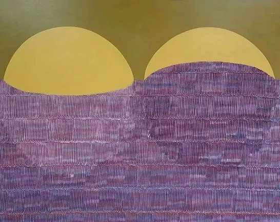 《两个圆形空间》作品中艺术家特意制造一个鼓起,一个是凹进去的效果。这样的尝试在不同作品中不同平面的变化显而易见,而如此尝试,从直线到弧线的转折是超现实的意识认知也是超现实的绘画动作。