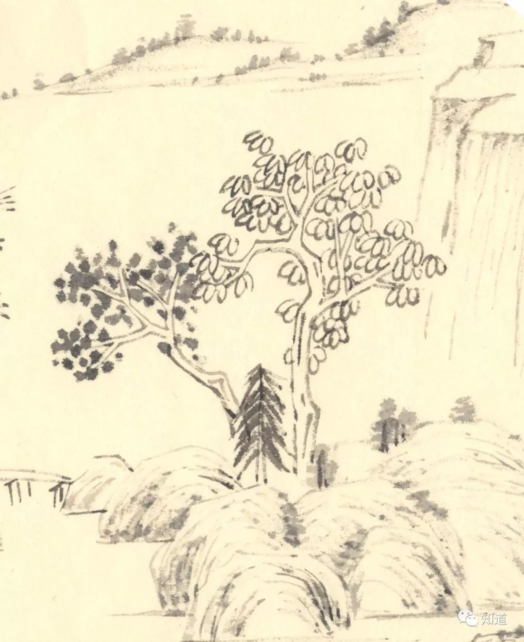 杂树枝要细,点叶要分明。不可太浓厚,不要太稀匀。山涧多树长,层次要分明。大小照远近,浓淡要看形。