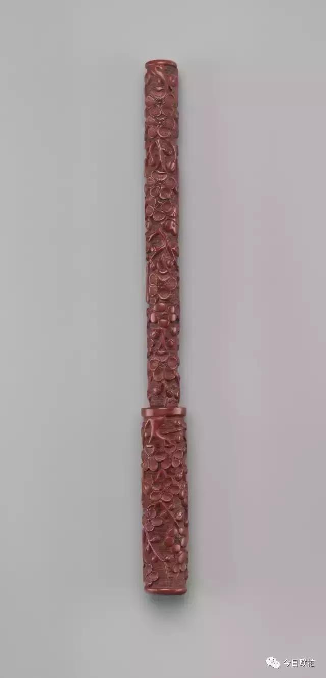 明晚期 剔红梅纹漆笔
