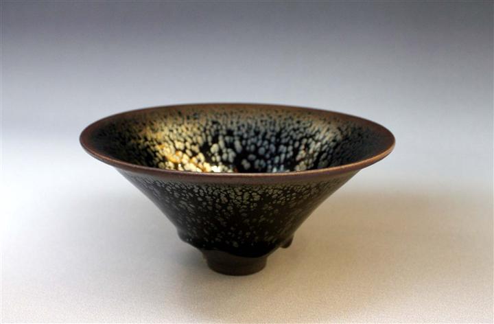 建盏是汉族传统名瓷。为宋朝皇室御用茶具。都用正烧,故口沿釉层较薄,而器内底聚釉较厚;外壁往往施半釉,以避免在烧窑中底部产生粘窑。