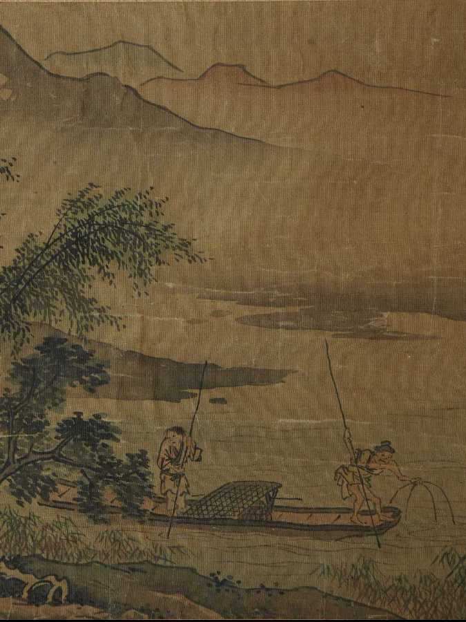 在人物处理方面,国画《斜江摇渡》与小说《边城》也颇有异曲同工之妙:两者都是把鲜活的人物形象置身于山水之间,营造出风土人情与自然和谐共处的格调,并在优美秀丽的景色中体显出人物清纯脱俗的自然属性。