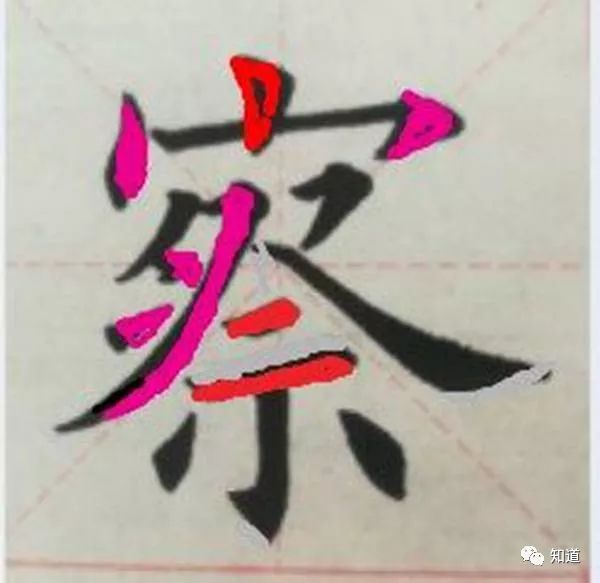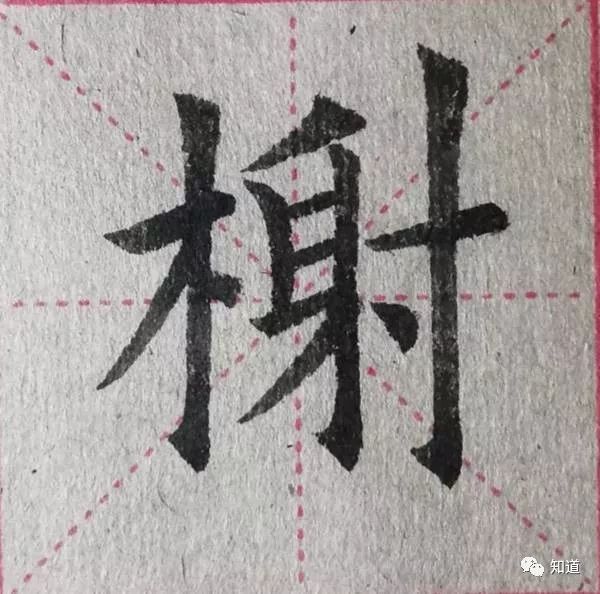 榭字:三勾有变化,特别注意是,右边比较空,所以竖加粗。