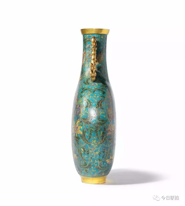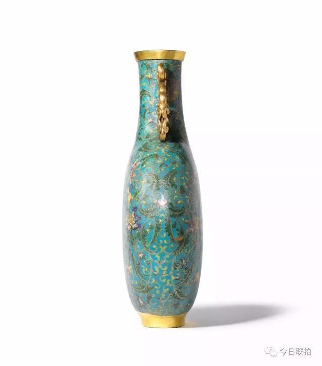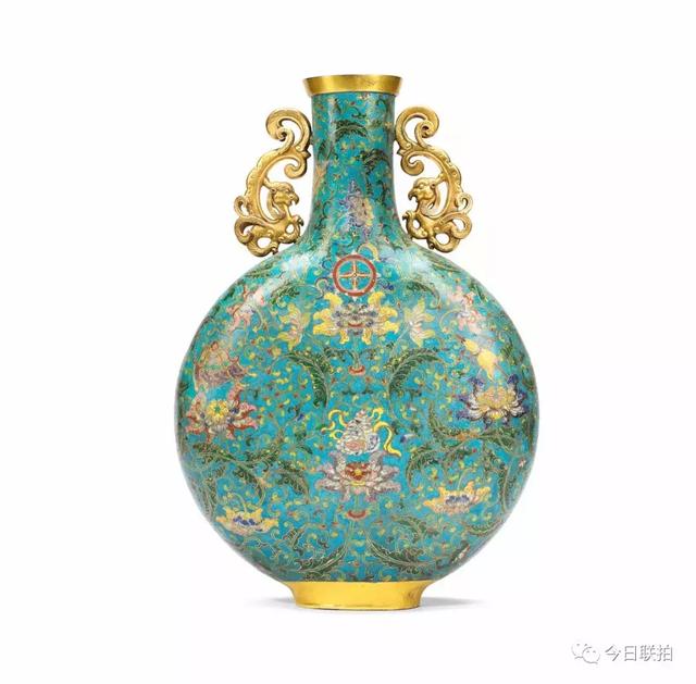 清乾隆 铜胎掐丝珐瑯缠枝牡丹托八吉祥扁壶