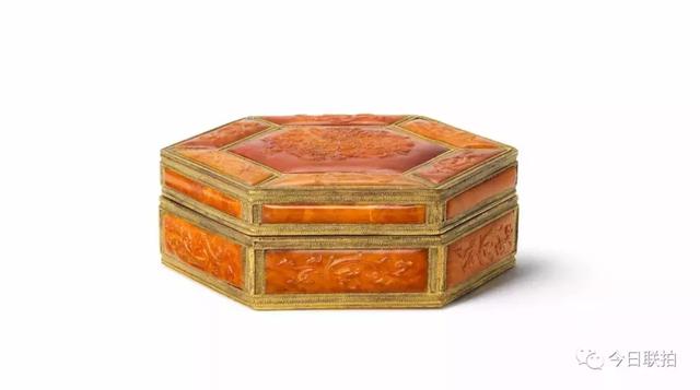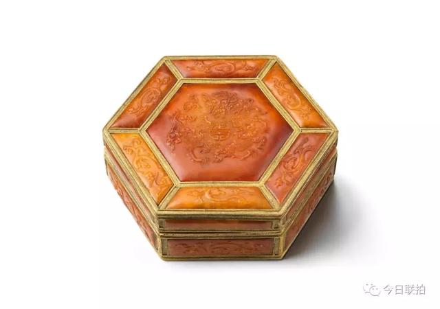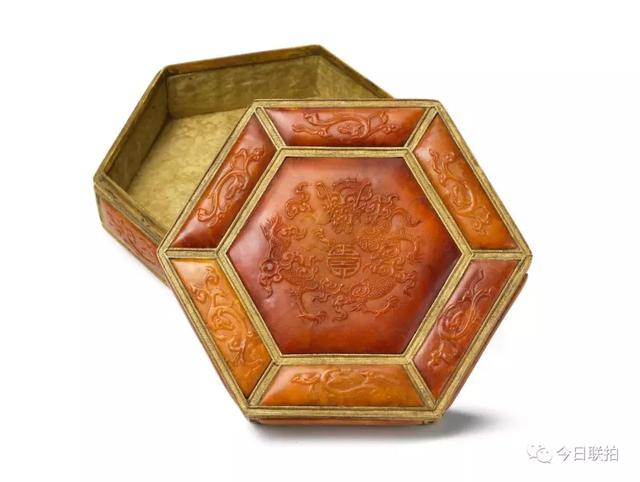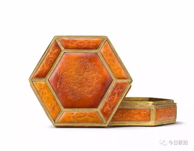 十八世纪 铜鎏金嵌蜜蜡云龙捧寿六方盖