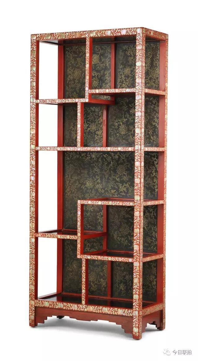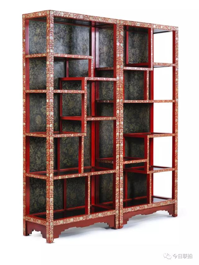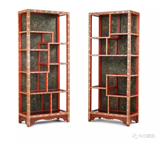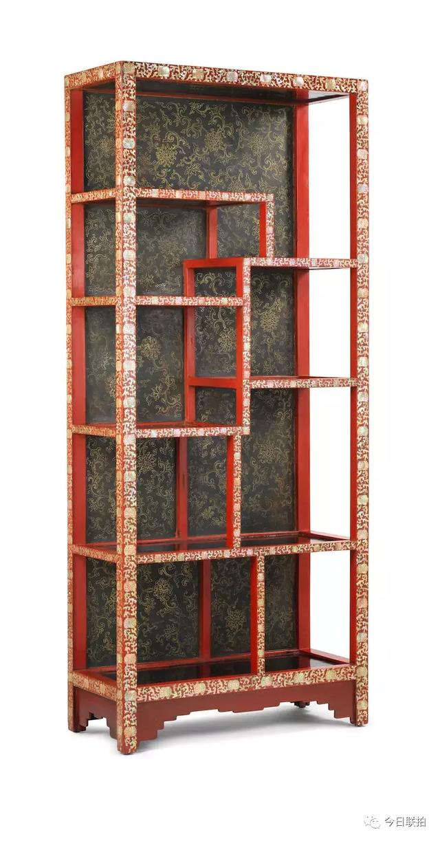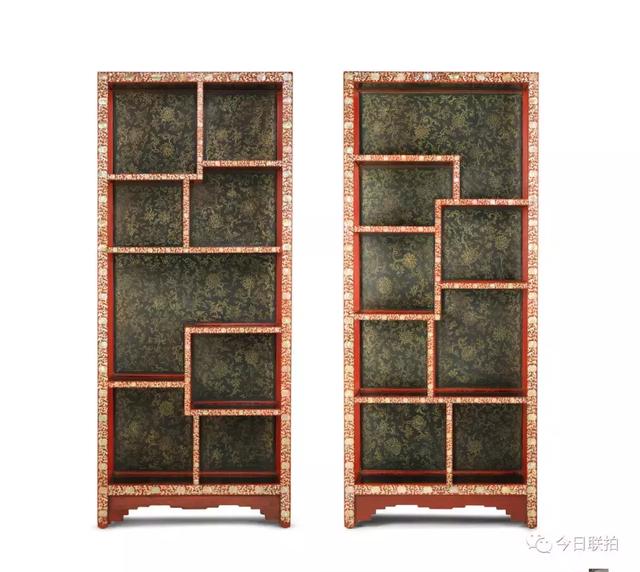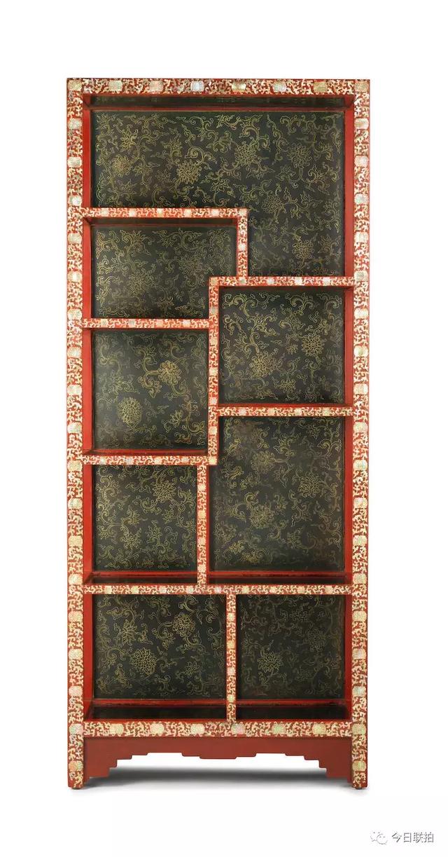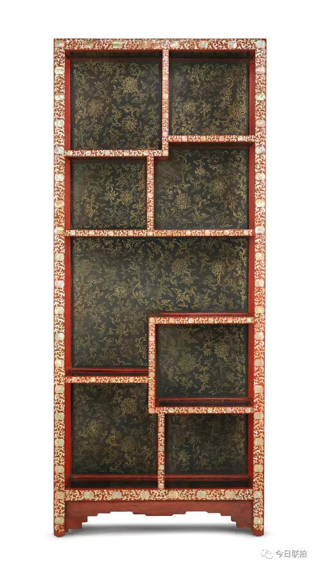 清中期 御制彩漆描金嵌螺钿花卉纹多宝格一对
