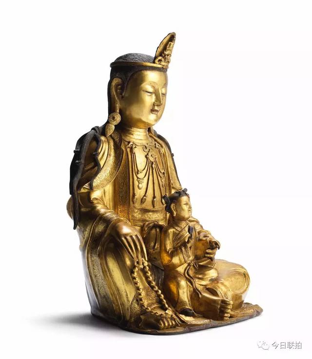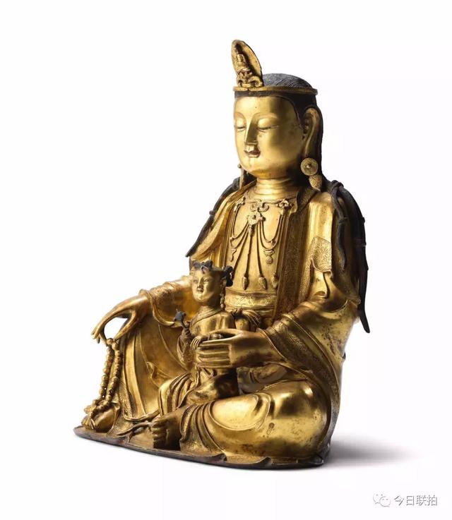 明晚期 铜鎏金髹漆碧霞元君坐像