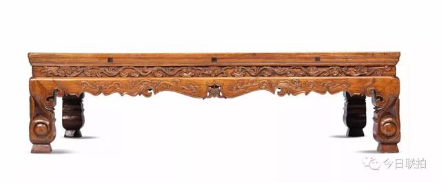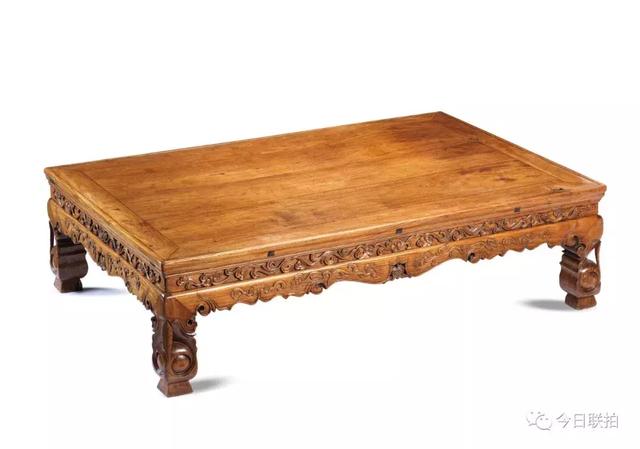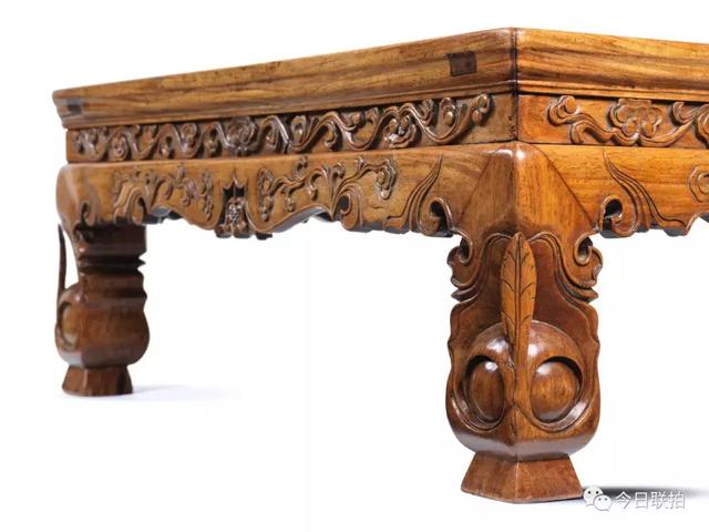 十七世纪 黄花梨卷草纹卷球足炕桌