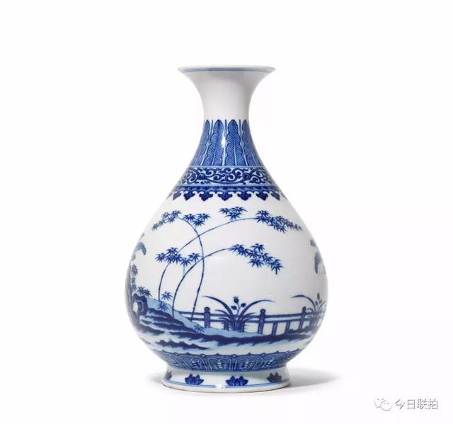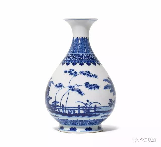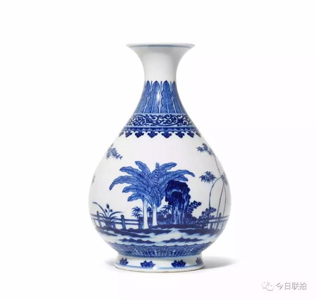 明清官窑瓷方面也不乏亮点,清乾隆 青花竹石芭蕉图玉壶春瓶为乾隆时期青花瓷佳作。其线条流畅,胎质细腻,釉面光洁莹润,青花色调明快,层次丰富,纹饰描绘细腻,笔意娴熟。其芭蕉竹石部分使用点涂技法,笔触表现淋漓尽致,其画工、布局及神韵颇有永乐宣德时期之风骨,为后朝所不及。