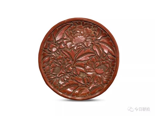 十四世纪下半叶 剔红牡丹花纹圆盘