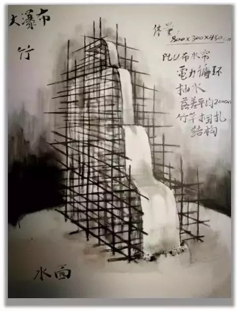 将700根竹子与幕布、水流搭配,艺术家赵弥营造出一幅写意的中国山水画卷。作为曾参与巴黎Parcours艺术节的艺术家,赵弥为成都Parcours艺术节全新创作了《大瀑布2》,并为它增添上一丝故里柔情的思绪与东方文人的情致。
