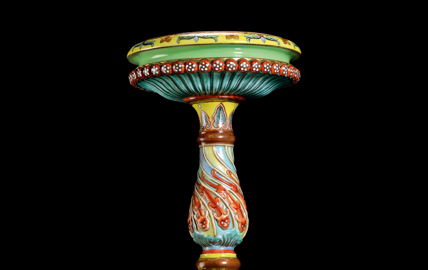 创新和影响彩釉装饰最早的是青釉釉下褐彩,出现于三国吴的瓷器上,长沙窑将此技法普遍运用在瓷器上,创烧出高温红彩、蓝彩,进一步推出白地绿彩、青釉绿彩、青釉褐绿彩等用铜金属氧化物作呈色剂的各种彩绘品种。红彩即为高温铜红,以往人们对高温红釉的起源一直难以搞清。现在,经过考古发掘和专家的研究,认为长沙窑是最早使用高温铜红釉的。如镇江市区出土的长沙窑青釉红绿彩水草纹盂(图1),高4.4、口径3.3、底径3.6厘米。圆唇,敛口,扁圆腹,假圈足。全器施釉,底部无釉。铜的着色剂在釉料中若在氧化(即含氧多的窑)气氛中燃烧,会烧成氧化铜的绿彩。但如果铜在还原(即缺氧情况)气氛中燃烧,则会成为带红色的氧化亚铜或铜离子。长沙窑以氧化铜为呈色剂烧成高温釉下红彩,开创了中国瓷器史用铜装饰瓷器的先河,北宋晚期钧窑窑变红釉、元景德镇窑铜红釉都是在此基础上进一步发展起来的。在铜釉中如果渗有高剂量的磷酸盐,而氧化铝的成分又低,那在高温烧成后表面釉色总泛上青蓝的色调,过去当是钴料烧成的。镇江中山路拓宽工程工地出土长沙窑青釉蓝褐彩水盂(图2),高3.8、口径3.2、底径3.3厘米。敛口,鼓腹,假圈足(图3)。肩部施蓝褐彩条纹,胎灰白色,较紧密,施釉不到底,釉层光亮。绿釉器与红釉器一样都是以氧化铜为呈色剂烧造的制品,用一种金属氧化物烧造出不同釉色的技术,为元明景德镇窑生产多样的单色釉奠定了基础。