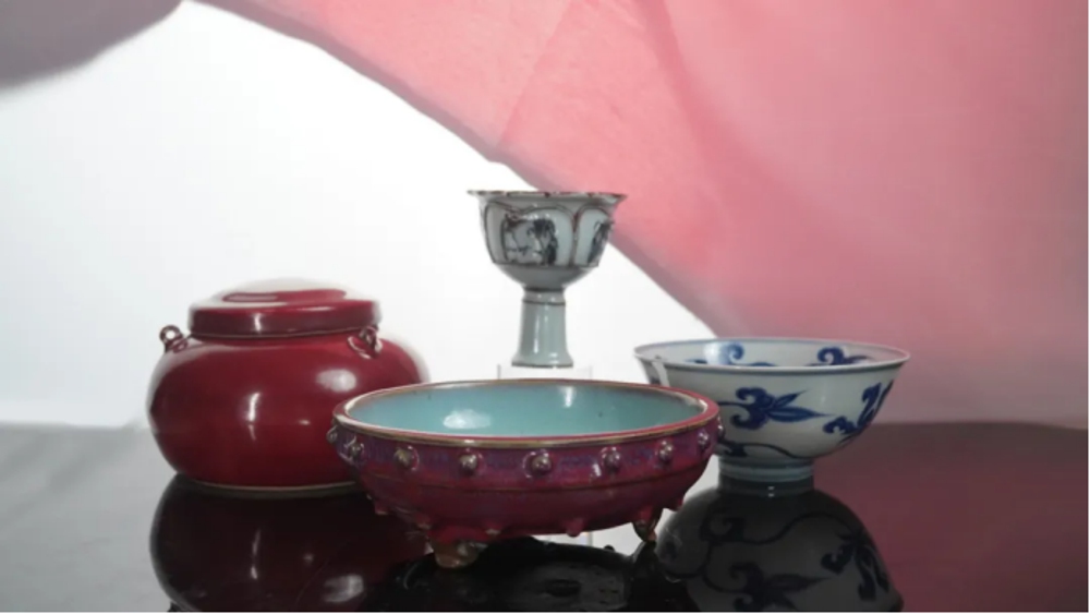 豇豆红釉质都很匀净细腻,含有粉质。红釉中往往散缀有因烧制时氧化还原不同形成的天然绿色苔点。釉色有上下高低之分。上乘者,名为“大红袍”或“正红”,釉色明快鲜艳,通体一色,洁净无瑕。居中者,釉如豇豆皮,含有深浅不一的斑点,甚是柔和悦目。有的器身或口沿露出“缺陷美”的绿斑苔点,今称作“美人醉”或“美人霁”。