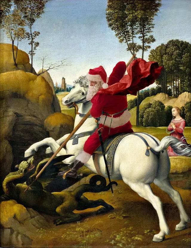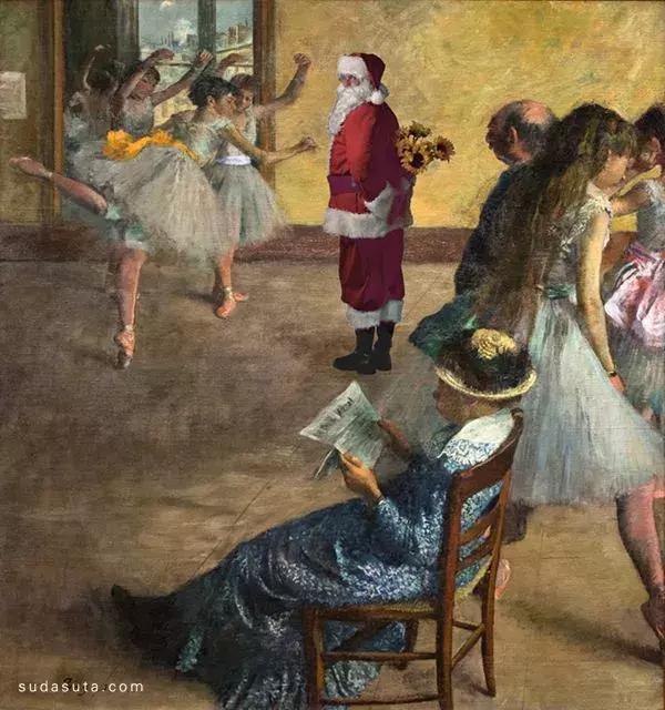 把圣诞老人巧妙地插入那些世界知名的艺术
