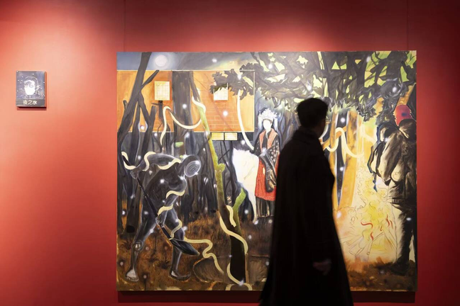 开幕式上艺术8也有幸邀请了李婷婷的导师黄华三的到场,他表示李婷婷的创作灵感,离不开她的生长环境——山西,也从最开始的接触中便发现了李婷婷对中国传统艺术符号的熟悉。他介绍道:“山西是中国文化底蕴深厚的城市,也是中国传统艺术的发源地,而李婷婷自幼生活在孔祥熙的宅院里,在中国传统精美的石雕、砖雕建筑氛围下成长。而她选择的水墨材料进行创作,激活了中国传统的艺术符号,让传统样式和符号在当今时代重新焕发新的生命力。”在黄老师的眼中,李婷婷是勤奋的学生,一次暑假的一句玩笑“要想画好画,这个暑假要画200幅,而她真的做到了。”这等勤奋也让李婷婷收货了今天的成果。
