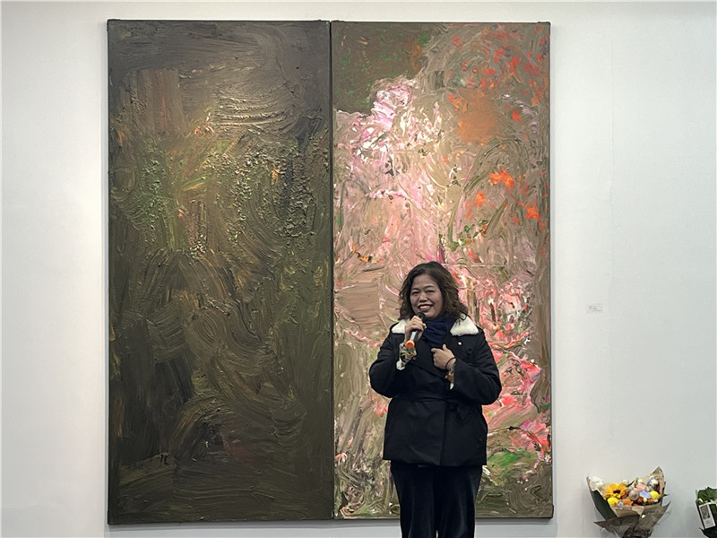 黄渊青的绘画具体地得益于宣纸和画布这两种不同媒介经验的相互转化,更进一步则是来自于两种不同视角和文化的相互补充:宣纸保留了书写过程中力透纸背的心理力量,以及笔墨与宣纸间的亲和性,而画布更倾向于直接的对抗力量。从绘画的角度看待书法,以及从书法的角度看待绘画,这两种观点在他近三十年绘画生涯中逐渐由分别进行的、演变为一种自主的和同时实践的双向视角,即书法的体验深入于绘画过程,并且与他对绘画积累的经验和体会相融无碍。