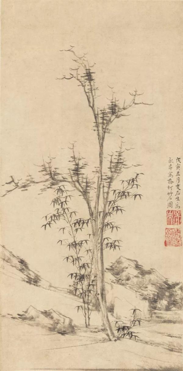 明 王绂《乔柯竹石图轴》纸本墨笔 纵54.7厘米 橫27.3厘米 故宫博物院藏
