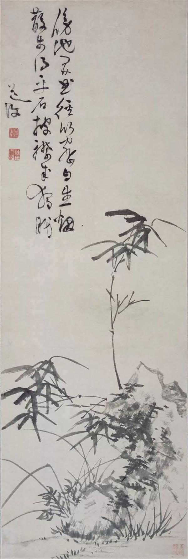 明 徐渭《竹石图轴》 纸本墨笔 纵122厘米 橫38厘米 广东省博物馆藏