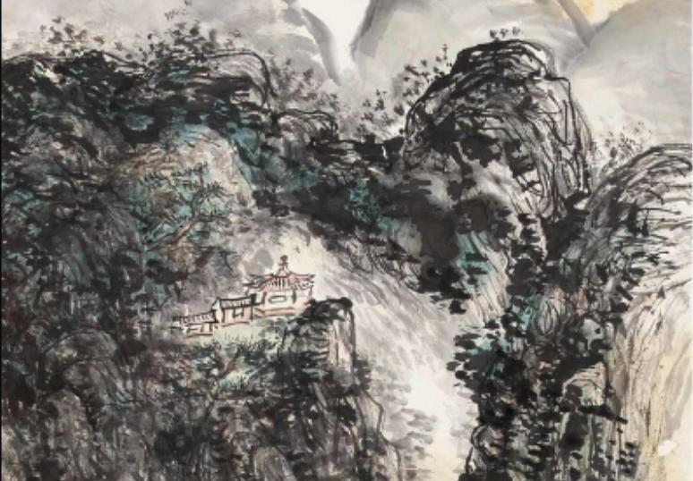 王兰若《高山流水》,纸本墨笔,2012年,180x96厘米,广东省博物馆藏