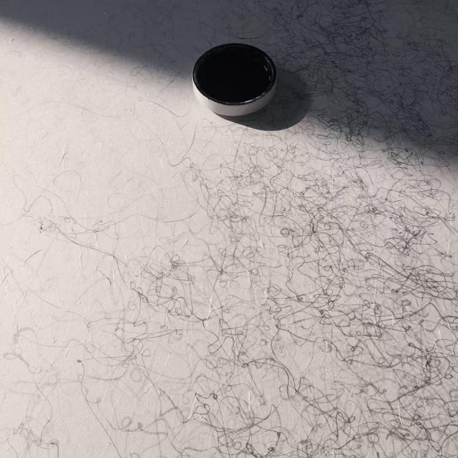 “我这次参展的作品于之前的区别在于,简化了空间的频率。让物性空间自然的呈现光影的变化。从具体的物象中抽身而出,从沉重的世界里挣脱开去,超越其上,让感觉、思想和灵魂获得最大限度的释放,探寻、发现、挖掘那些最基本的视觉元素的种种构成可能性,从而呼唤、呈现一个被喧嚣的物象所遮蔽的纯粹世界。”戈子馀将创作当成一场修行,着迷于艺术的纯粹语言,探索着空间与平面维度的边界。他以日常手感的经验营造出空间的维度,他通过琢磨色彩在物性空间中自身的规律及属性,试图打破无限度的模糊物性空间与虚拟空间的边界。