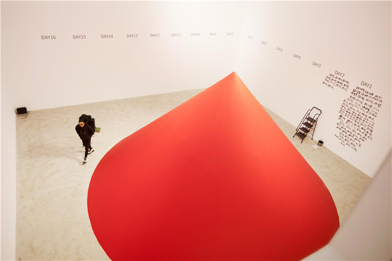 创作这件作品,对于葛宇路的体能来说是个不小的挑战,现场有观众问他是不是瘦了,他讲到自己疫情期间养的肉都消耗掉了。