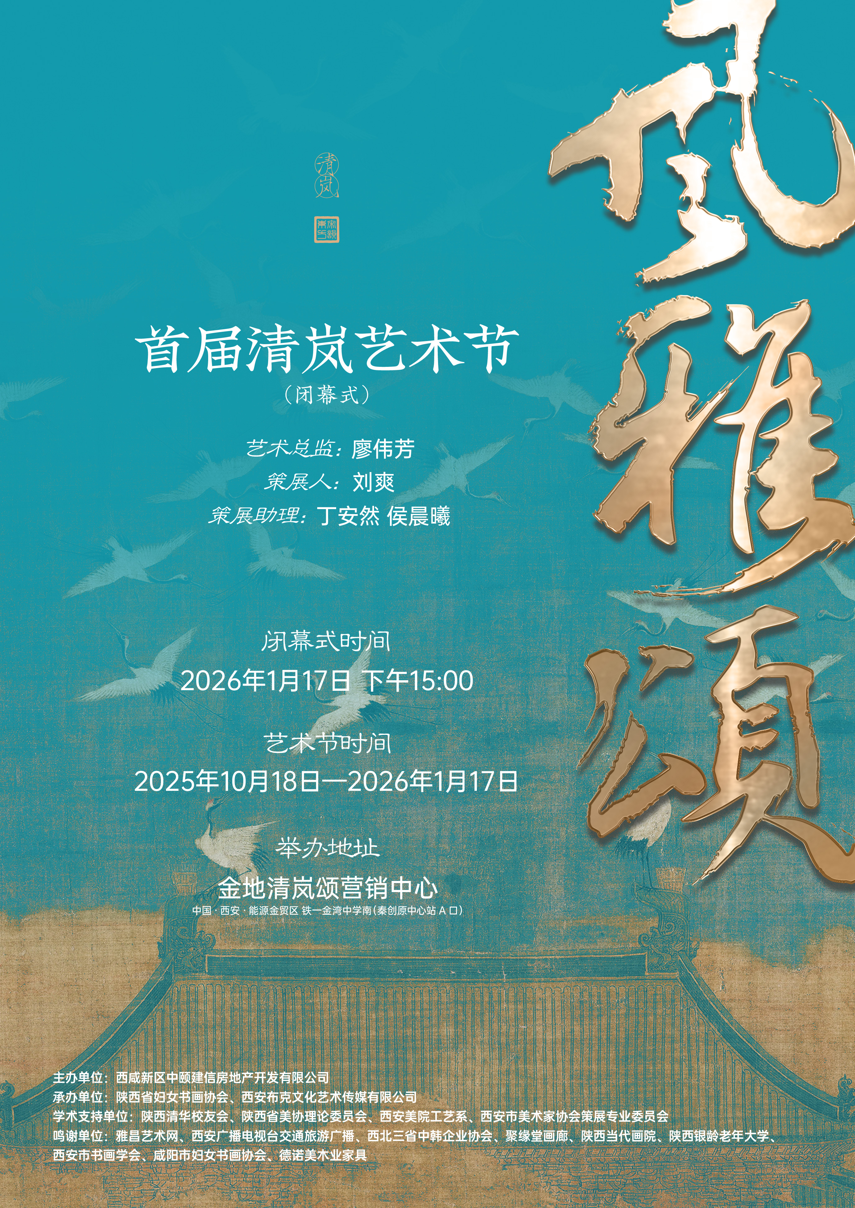 2025年12月6日 下午,由金地清岚颂营销中心(宋韵美学生活馆)主办、陕西省妇女书画协会和西安布克传媒协办的《风雅颂·首届清岚艺术节》下半场启幕。展期将持续一个半月艺术总监廖伟芳、策展人刘爽。