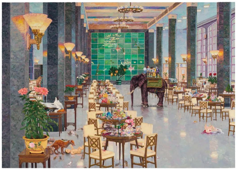 策展人陈立介绍,神话形象和历史建筑元素常出现在张颖的绘画中。她将古典柱式的形制抽象化为装饰纹理,并转化为神话形象的肌理。在她的绘画中,具象与抽象相互依存,神话、古典遗迹和现代装饰共同构成了一种视觉脉络,反映出个体在现实世界中的处境。