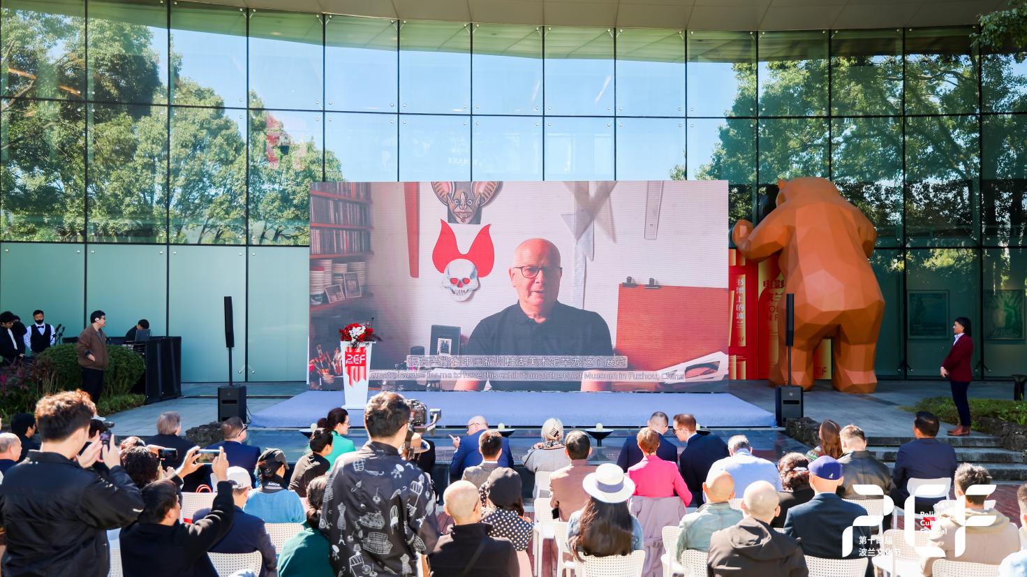 策展人兼桂湖美术馆馆长林林峰(左)与艺术家王毅(右)在开幕式现场致辞