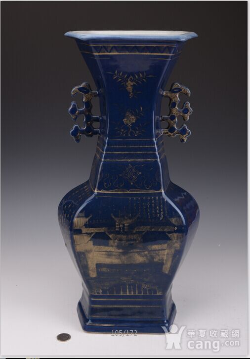 华夏收藏网古汉轩个人第二场玉器杂件专拍6.24~25,共110件拍品,于2016-06-25结束,该场拍卖总额高达496195元,获得该场标王的是------欧洲回流季蓝描金双耳瓶。