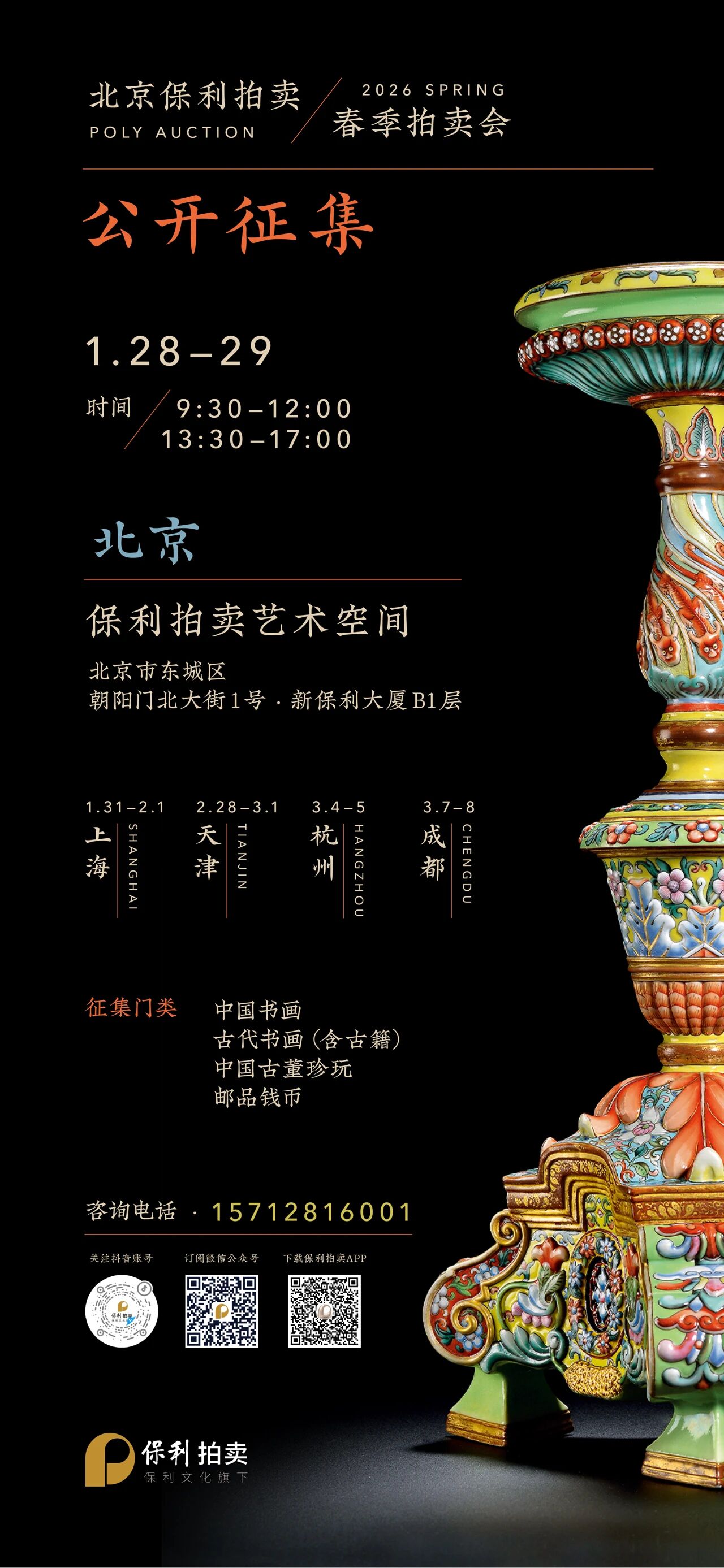 西泠“十周年庆典秋拍”去年岁末收获业界激赏的成绩,38个专场总成交额18.33亿元,总成交率83.33%,创多项拍卖纪录,旺盛的人气和火爆的现场令人难忘。十年发展,西泠拍卖从传统书画到文房雅玩,为藏家梳理具有文人情怀及生活雅趣的收藏脉络,新十年启航,西泠拍卖将继续传承百年西泠印社的文人情怀和金石精神,坚持着以学术指导拍卖的理念,稳步发展。着眼于艺术的广度与深度,努力承担起传播文化与艺术的社会责任,为西泠印社这个百年品牌再添新彩。2015西泠春拍定于今年7月杭州举槌,随着新一轮春拍征集活动在全国各地的展开,部分拍品也提前露面,此次赴沈阳征集,西泠拍卖期待与新老藏家共续人文之风。