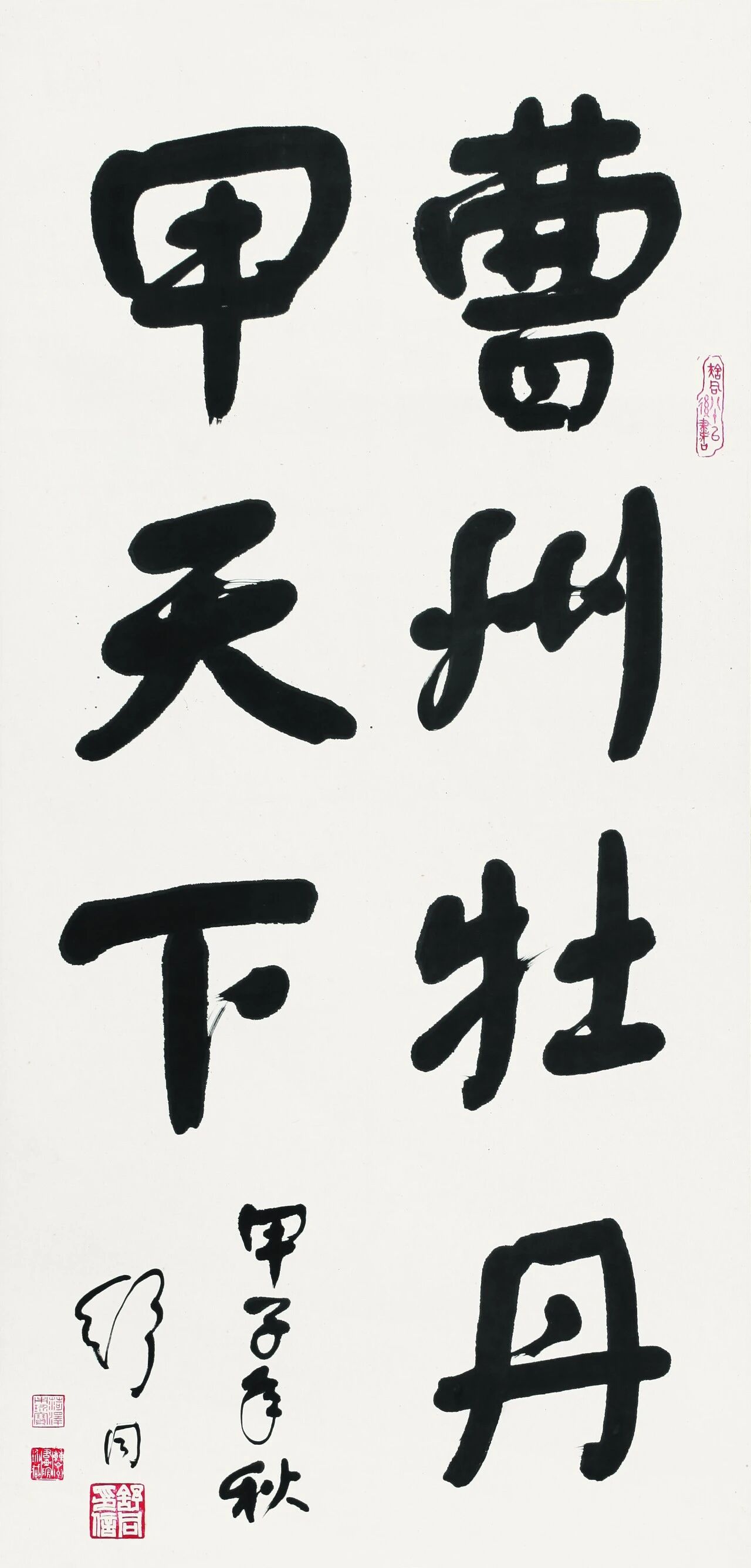 在书画领域,再好的金石味儿,也需要人的气息在里面,而大篆无疑是最好的载体。大篆文的金石气凝聚了崇高范畴的坚实、巨大、郁壮和拙朴。金石气来自宏壮的质体,同时又显出优美的姿态,看似极刚,又极其柔润。