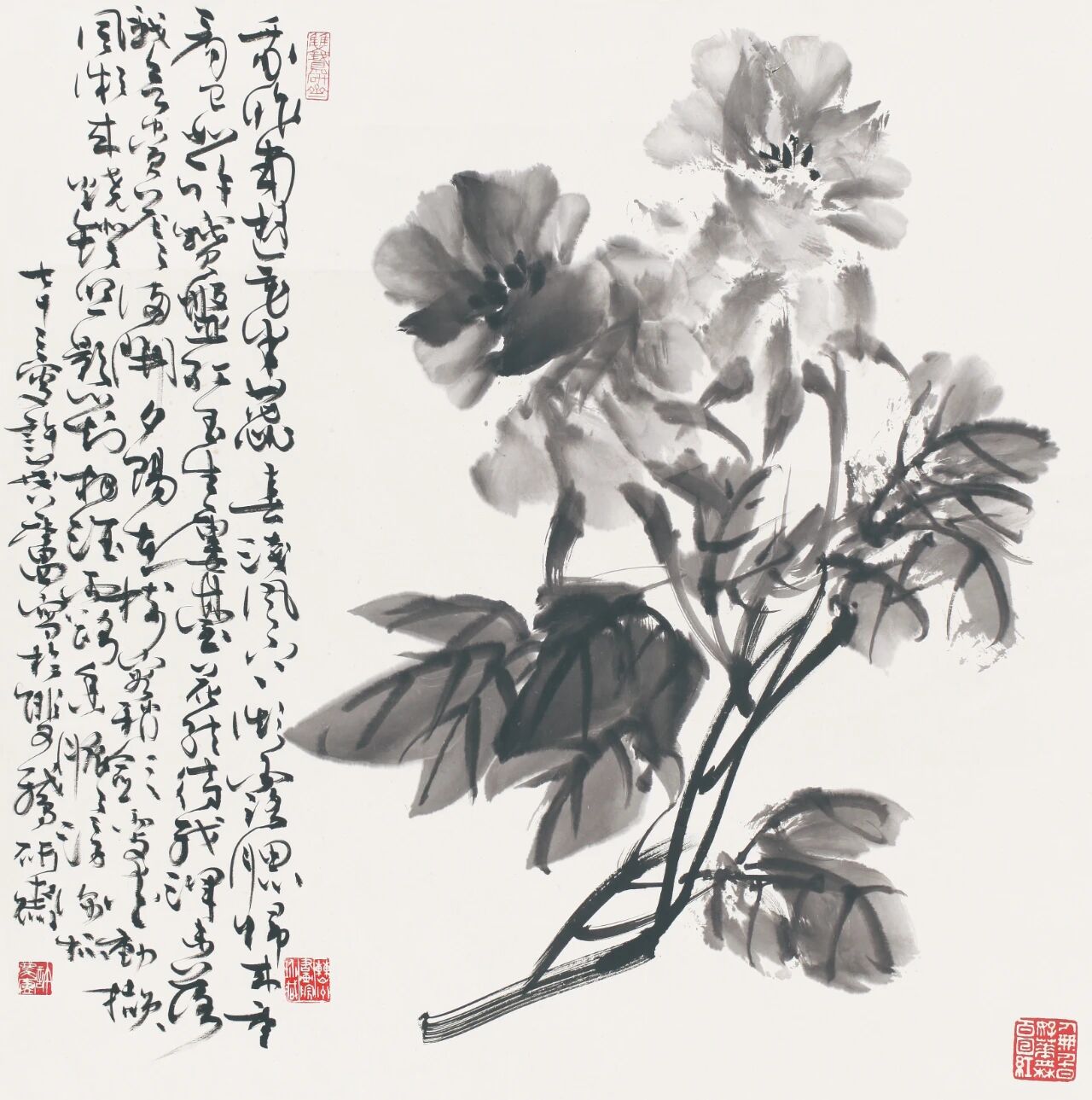 大愚的篆书大多点画峻厚、意态奇逸,透过一股金石气将墨客风骨呈现出来。从笔法技巧来看,大愚在创作篆书作品时,运笔老辣果断,笔速时缓时急、重墨行笔,入笔逆锋、中锋运笔,末端自然出锋,笔画渗洇恰如其分,表露锈蚀之美。