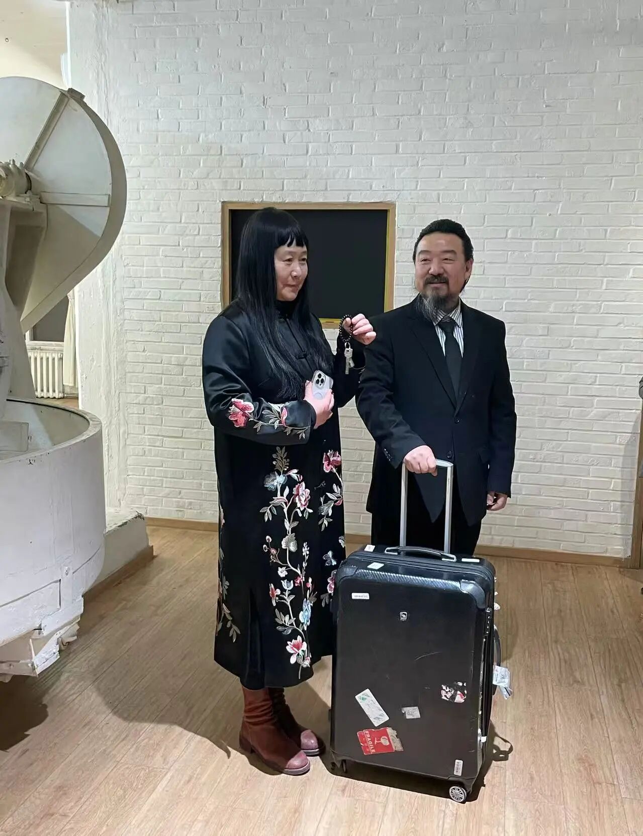 艺术家陈丹青(左)与策展人崔灿灿(右)在展览现场