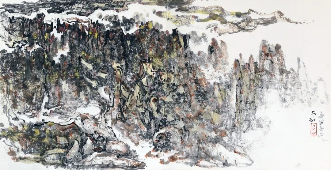 靠着与大自然那份炽热的情感交融和对大自然深刻的领悟,靠着艺术传统的启迪与熏染,凭着自身学养的积累,更凭着刻苦勤奋的劳作,实验与探究。他已经驾驭着属于自己的一身笔墨工夫,他纵姿把横笔竖抹,墨随象变,干湿自如,苍润相宜,似近畅神达意。毫不拘泥与某家某法,萧萧洒洒地状物抒情,营造画中境界。这自由的天地,使他深藏的艺术潜能和悟性得以充分的挖掘和发展。
