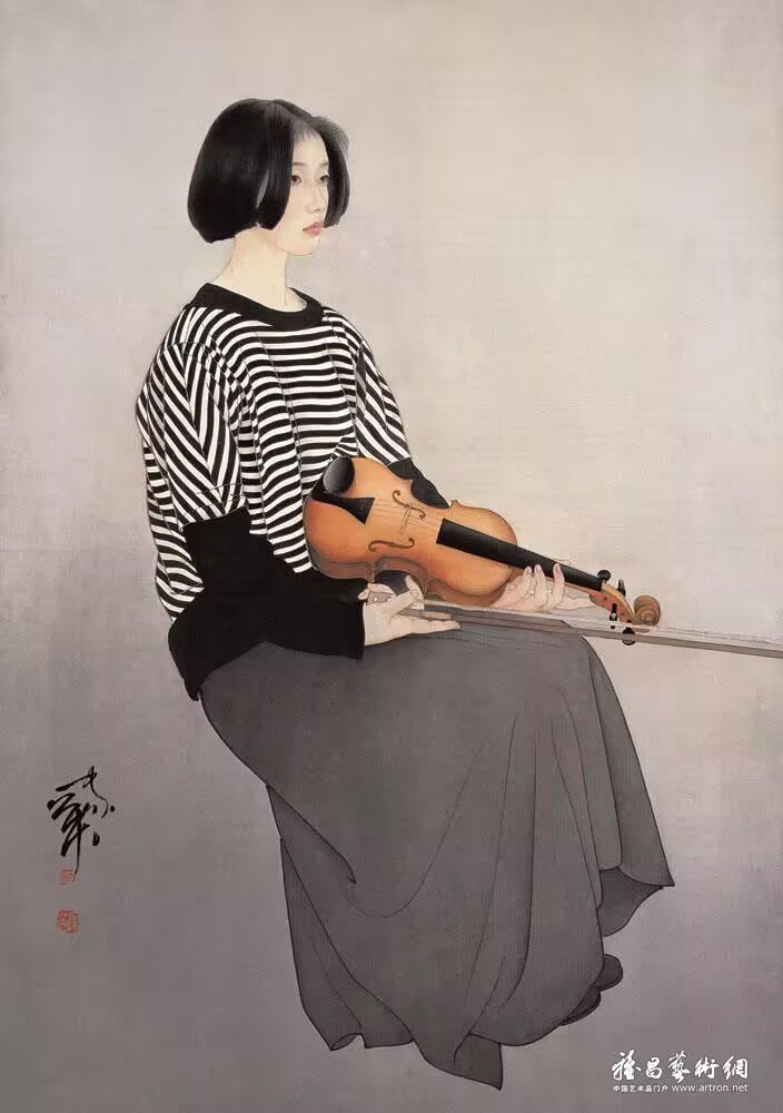 我的画,偏重于女性描绘,这其实很难,因为容易“俗”。原因是,这种题材,作者和读者都极易堕入一种思维定势:把女人当美人看。女人一变而为美人,其原有的丰富和自然健康的内涵就被弃置,代替的是矫饰和做作的外观,于是就千手雷同,千人一面,西施、王嫱长得一样,秦娥、赵姬了无区别,特别概念,也特别俗气。我很警惕,也一直规避这种取向。必须求异,要充分刻画,从外在形象到精神气质,体会其微妙之异。古人讲“摄生动质,凝神空照”,即从形到神完整地揭示出对象。而这种生、质、神、照,又绝非纯客观的描画,更多的则是主观的赋予,这并不矛盾。法国文学家法朗士说:“关于但丁,关于莎士比亚,我讲的是我自己。”就是说,他讲的但丁、莎士比亚是他自己观照下的但丁、莎士比亚。循此我也可以说,我笔下的对象是我内心世界的表达,我必须要赋予对象以我的思想、感情、格调,这才是我的画。比如,不管我所画对象多么不同,但她们一例都有一种高洁的气质、伤感的情绪,而我的人生体验里,总觉得这是最美的,或者说,在我的审美理想中,有一种情操上的取向,而我将其赋予她们。