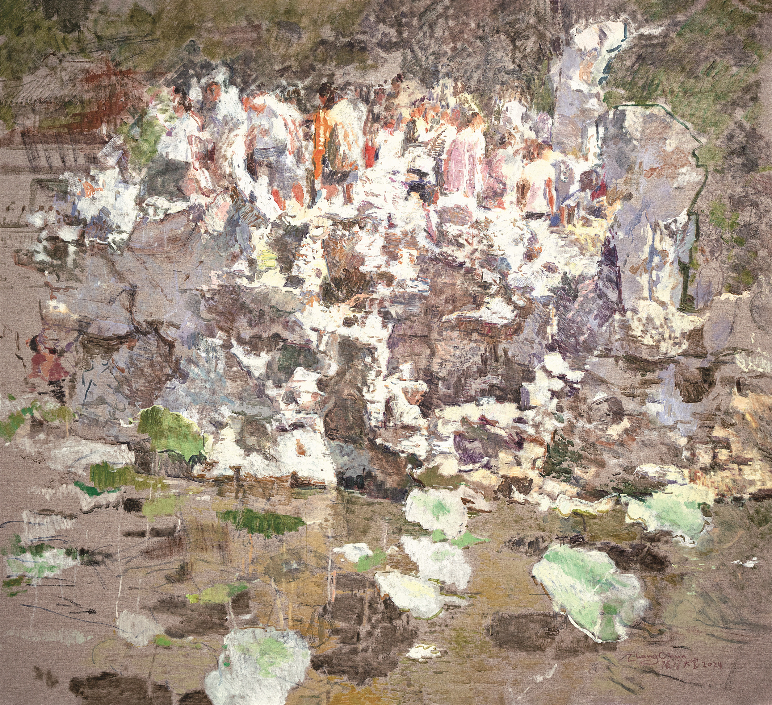 就这样在骄阳似火与潮湿的天气里,顶着闷热的高温跨度一周,每天三个小时的车程,祈求希望不要下雨,每次必须在5点前画完并收拾完工具离开。有的管理员看来的是艺术家非常高兴,直接免费门票,有的管理员则认为在这画画影响了别人要让我们离开,画画的正好着,心情受到很大影响,每次画完回家还要稍做调成,基本人的体力耗尽,四张画下来人只想好好的休息不要再画了。