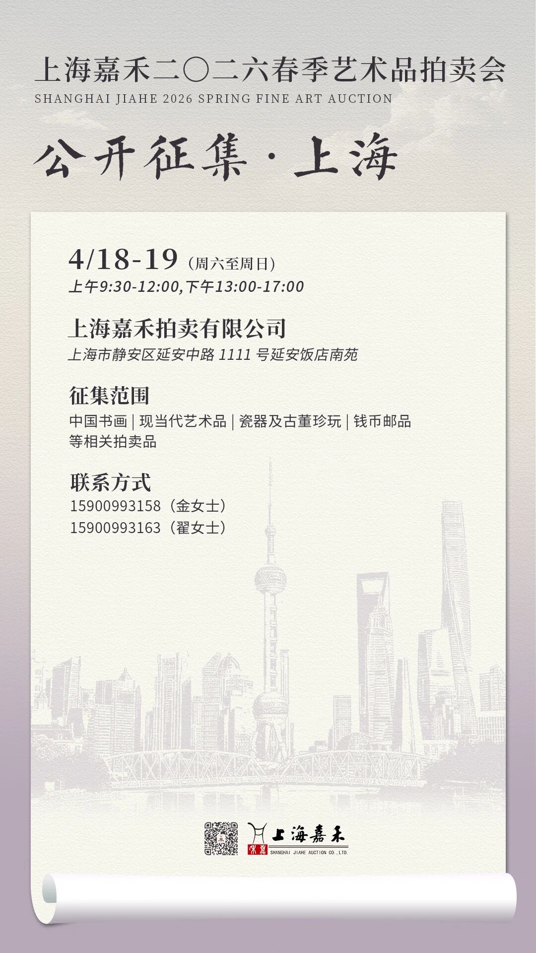 感谢大家一直以来对上海嘉禾的支持与关注,我们将继续努力,精益求精,不断为藏家朋友们提供精彩纷呈的艺术佳作!