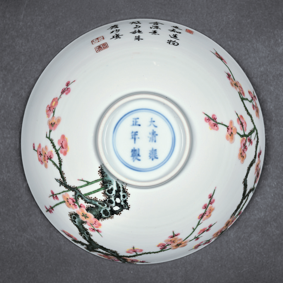 如果说浅绛更是一种文人雅玩的东西,那么新粉彩则在观赏性、商业性上取得了巨大的突破。新粉彩瓷画师大多出身艺匠,作品以工见长,浓艳俏丽,比浅降彩更符合新兴市民的欣赏习惯。如果说浅绛是一壶醇香的清茶,那么新粉彩就是一杯浓烈的咖啡。新粉彩用强烈的对比、精细的刻画、艳丽的色彩,取代了浅绛的柔和、随意和淡雅。
